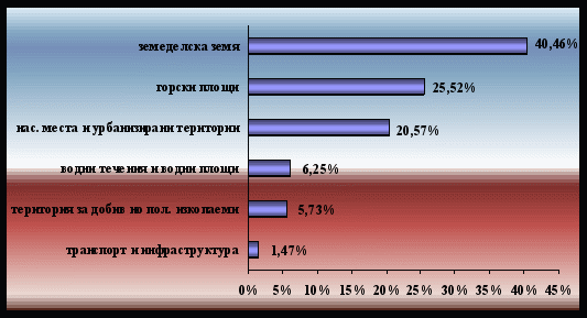 - съгласна данни на НСИ общата територия на Община Варна е в размер на 237485 дка, от които земеделската земя е 96097 дка, в т.ч. обработваема 89102 дка и поливна 1990 дка, а горската възлиза на 60618 дка. Експлоатацията на останалата територия е свързана с транспорта и инфраструктурата, добив на полезни изкопаеми водни течения и водни площи, населени места и т.н;