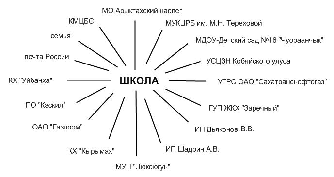 Внешкольные учреждения, с которыми школа поддерживает тесные связи, выполняют задачи дополнительного образования, образуют сферу наибольшего благоприятствования для развития личности ребенка. Наша школа устанавливает связи с социальными институтами, формируя социально-педагогический комплекс:
