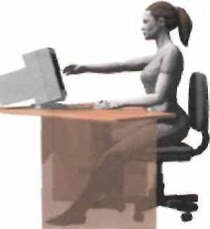 Правильная осанка – При работе за компьютером лучше всего сидеть на 2,5 см выше, чем обычно. Уши должны располагаться точно в плоскости плеч. Плечи должны располагаться точно над бедрами. Голову нужно держать ровно по отношению к обоим плечам, голова не должна наклоняться к одному плечу. При взгляде вниз, голова должна находиться точно над шеей, а не наклоняться вперед. Более детальное описание организации рабочего места находится ниже.