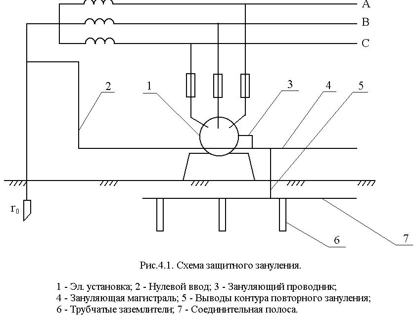 Зануление применяют в четырех проводных сетях с глухо-заземленной нейтралью напряжением до 1000В. Защитный эффект зануления состоит в уменьшении длительности замыкания на корпус и, следовательно, в снижении времени воздействия электрического тока на человека.