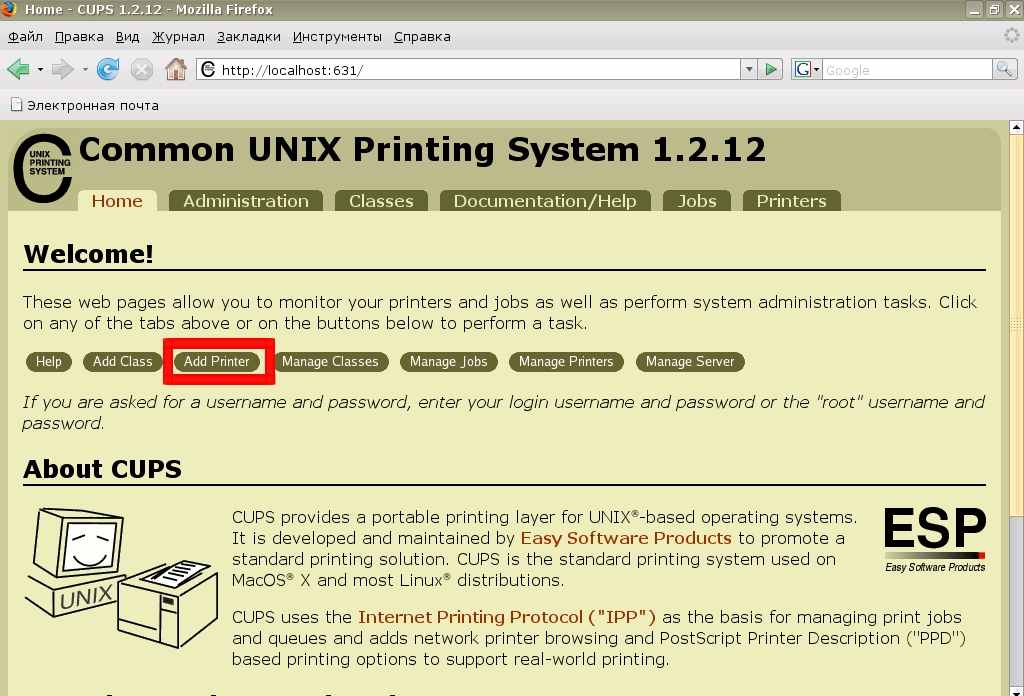 - На полученной странице нажать кнопку Add printer (Добавить принтер)