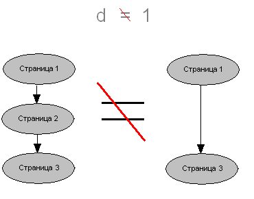 Необходимо вам более подробно рассказать про d – думпед ренж. В нашей модели это вероятность того, что пользователь не закроет окно браузера, а перейдет по ссылке. Его называют коэффициентом затухания. Если бы его не было-то (d был бы равен 1), пользователь бы бесконечно ходил по ссылкам, и рано или поздно посетил бы все сайты Интернета, т.е. вероятность у всех страниц на которые ведет хотя бы одна ссылка, стремилась бы к единице (100% вероятности посещения). Другую вещь которую он выражает то что если на страницах С1, С2, С3, С4 только по одной ссылке и страница С1 ссылается на С2, которая в свою очередь ссылается на С3, которая ссылается на С4, которая ссылается на С5, то это не одно и тоже что страница С1 ссылается сразу на С5.