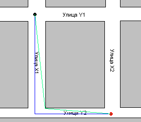 Y2, а потом идти по улице X2 до Y2. Т.е. вам нужно пройти сначала 400 метров, а потом еще 300 метров, итого 700 метров. Эта метрика называется Манхеттеновой (в честь района города Нью-Йорк Манхеттен).