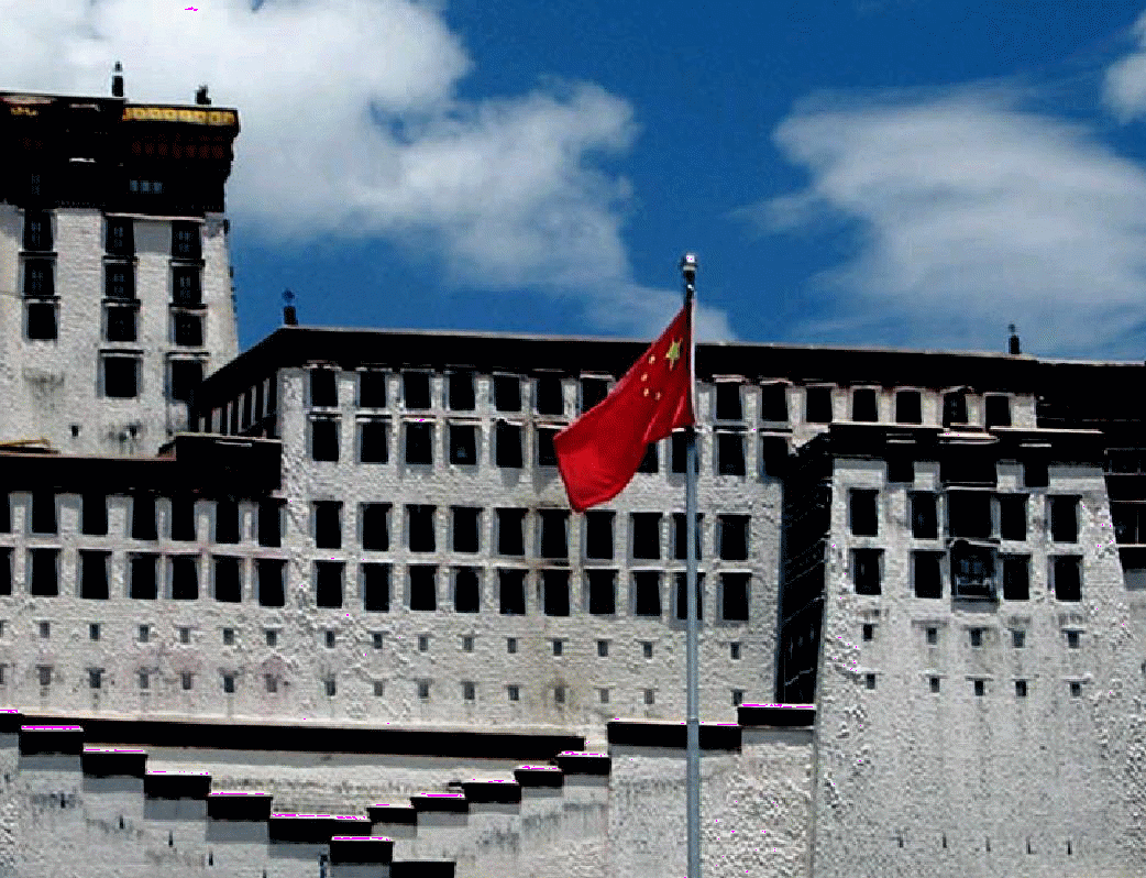 Красное знамя КНР реет у дворца Потала, который прежде был резиденцией Далай-ламы в Лхасе. Фото: ICT