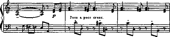 Здесь нужно совместить хорошую пальцевую активность с использованием веса руки; для достижения максимально певучего звучания можно использовать тембровые ассоциации, попросив ученика исполнить их так, как они могли бы быть сыграны струнном инструменте.