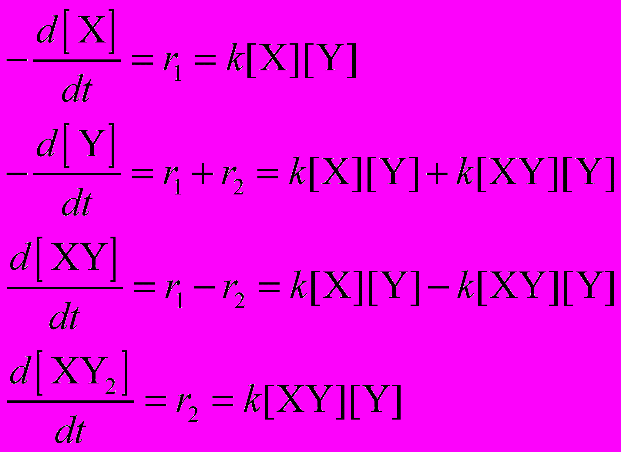 [X]0 = 1, [Y]0 = 2, [XY]0 = [XY2]0 = 0.