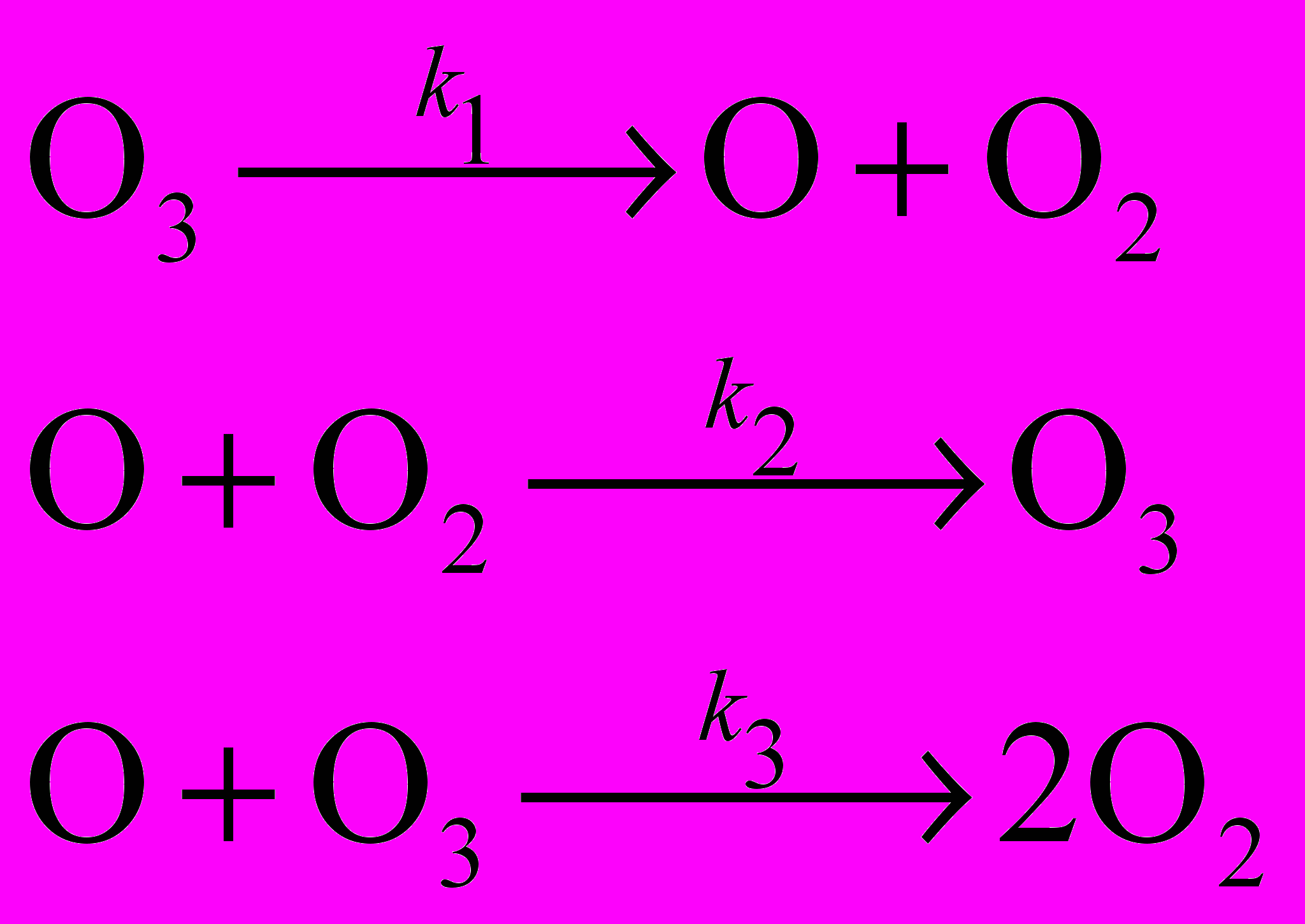 Озон расходуется в первой и третьей реакциях и образуется во второй. Скорость изменения его концентрации выражается следующим образом: