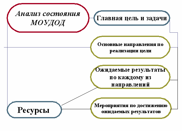 Программно-целевой принцип управления не исключает, а дополняет процесс управления. Программа развития МОУДОД Октябрьского ДДТ есть форма выражения целевой комплексной программы.