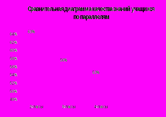 Самые высокие показатели качества знаний имеют учащиеся вторых классов. Затем отмечается снижение результатов, которое можно объяснить усложнением программного материала.