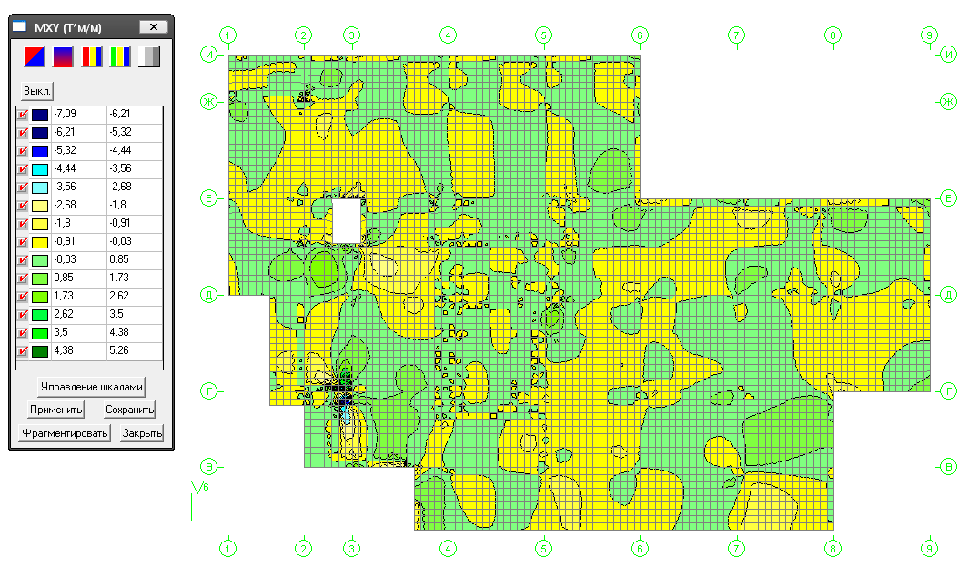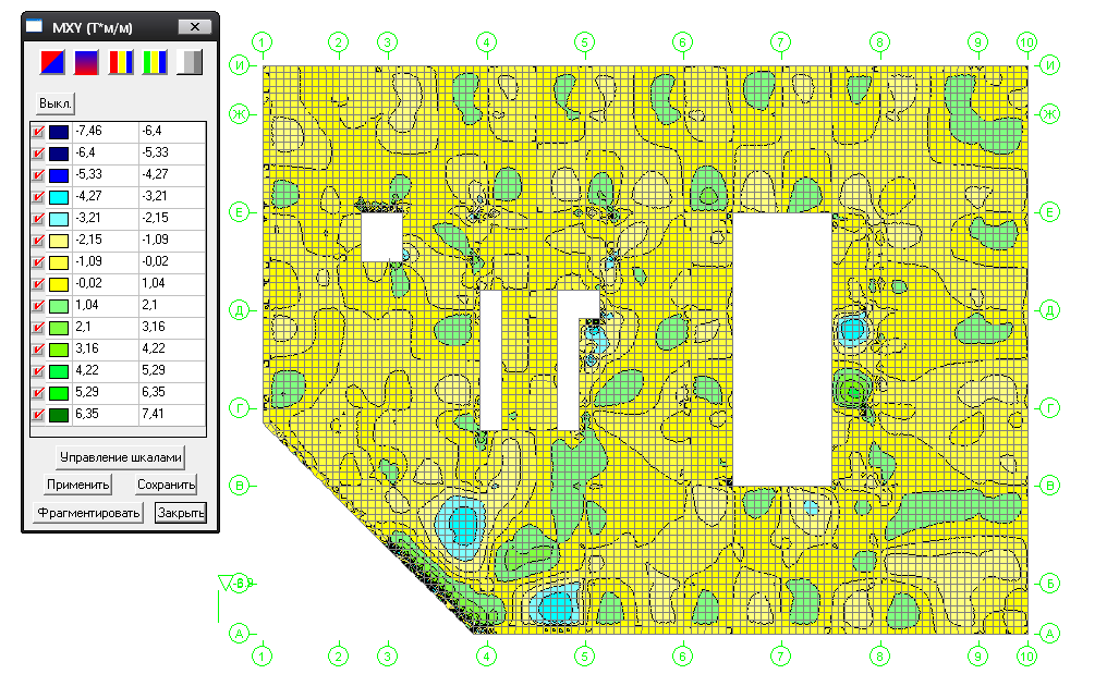 Нижнее армирование по X на уровне 6 м.