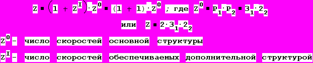 Сложенная структура представляет собой сумму обычных множительных структур и как бы содержит две и более кинематических цепей. Одна структура – основная, она используется для получения всех скоростей на шпинделе, остальные – дополнительные, они используются для части скоростей.