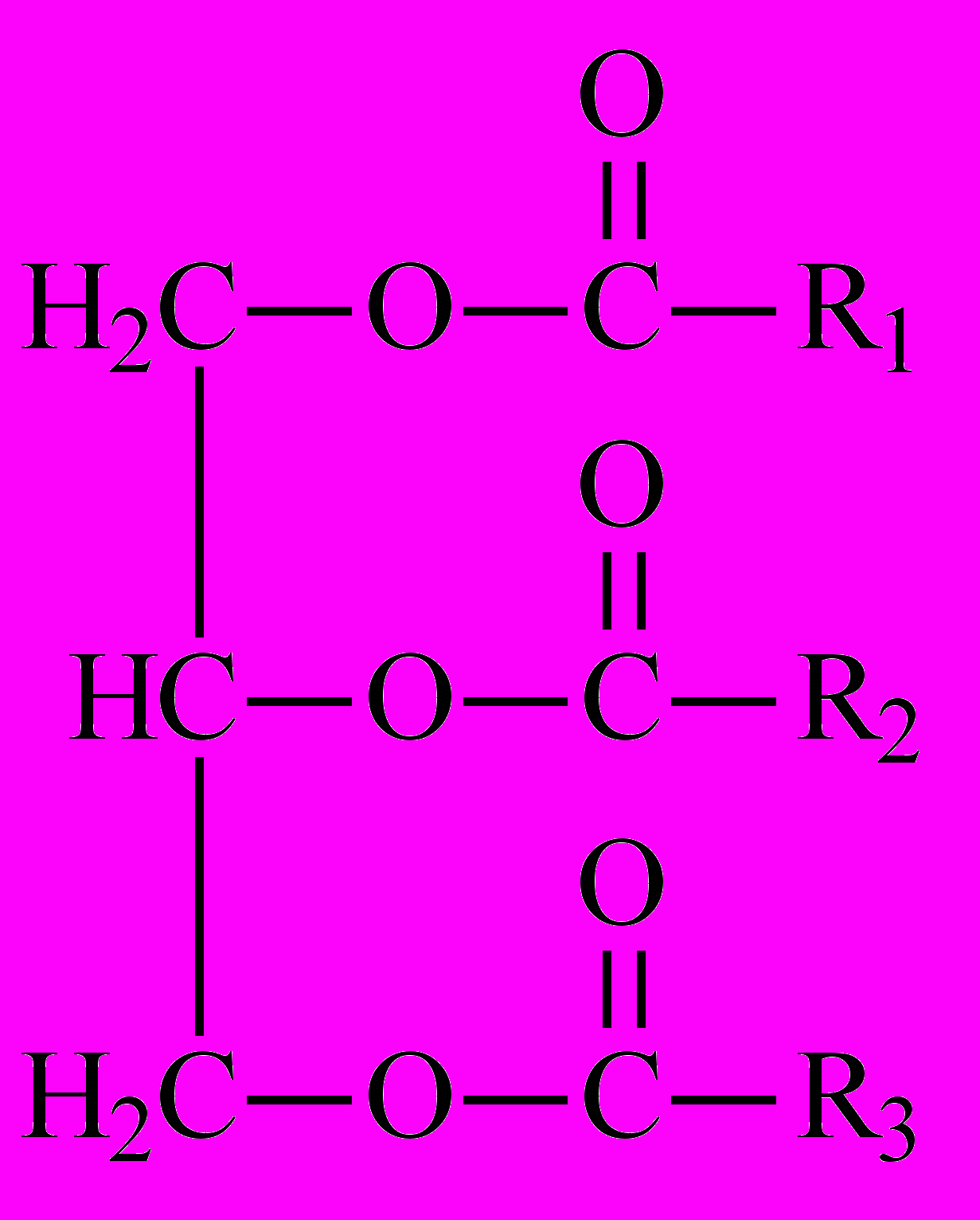 Жиры – это смеси сложных эфиров и высших карбоновых кислот и глицерина (трехатомного спирта). Общая формула жиров: