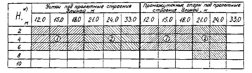 * для устоев - высота насыпи - от бровки полотна до обреза фундамента, для промежуточных опор - высота опоры - от верха подферменной площадки до обреза фундамента.