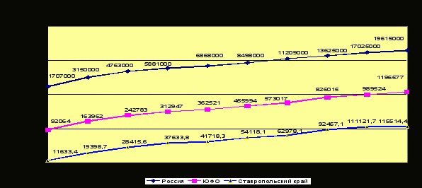 На основе анализа представленных графиков изменения объёмных показателей, налоговых отчислений, а также изменения структуры ВРП по Ставропольскому краю, по ЮФО и Российской Федерации можно констатировать идентичность этих тенденций.