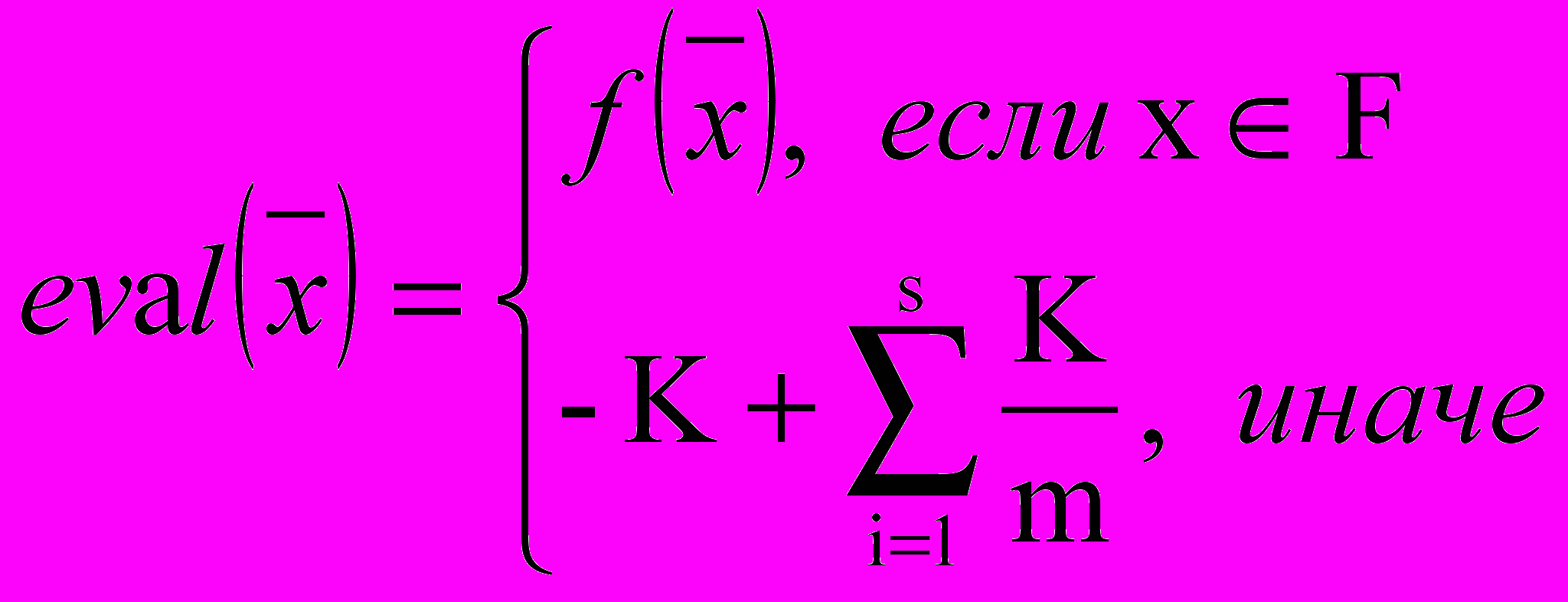 – вектор решений, F – область допустимых решений, S – вся область поиска. В качестве ограничений выступают q неравенств и m-q равенств. Функция