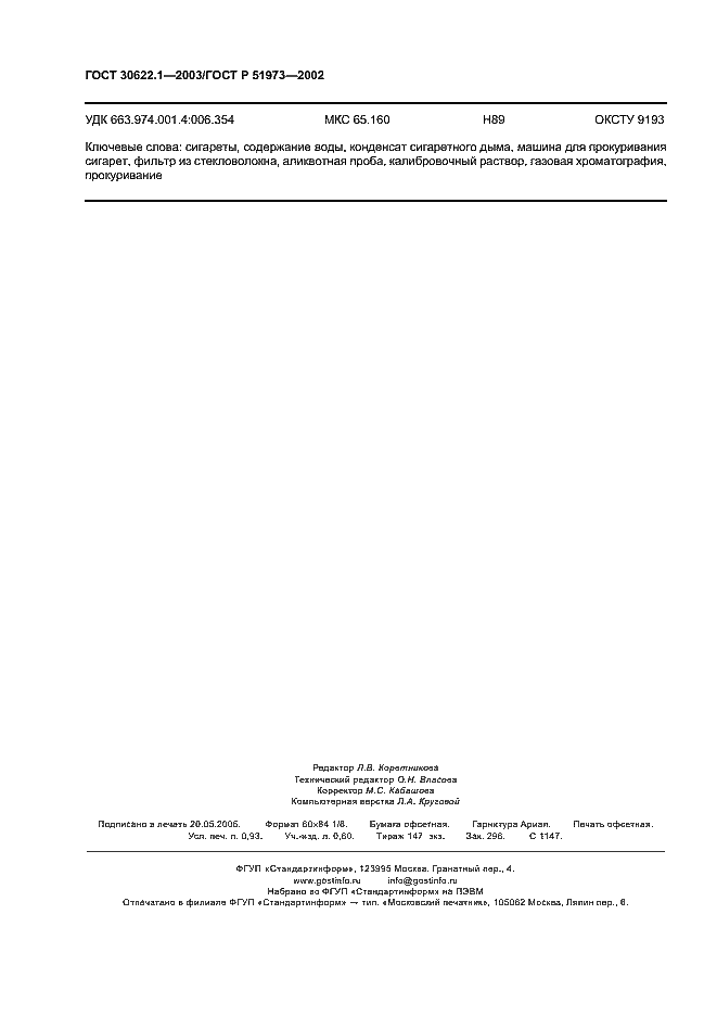 Гост 30622. 1-2003 Сигареты. Определение содержания воды в конденсате дыма. Метод газовой хроматографии