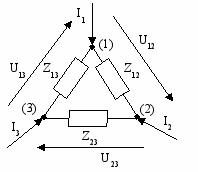 Преобразование звезда-треугольник приводит к уменьшению числа узлов преобразуемой цепи (за счет устранения узла, являющегося местом соединения сопротивлений Z1, Z2, Z3), однако при этом появляется новый контур, образуемый сопротивлениями Z12, Z13, Z23