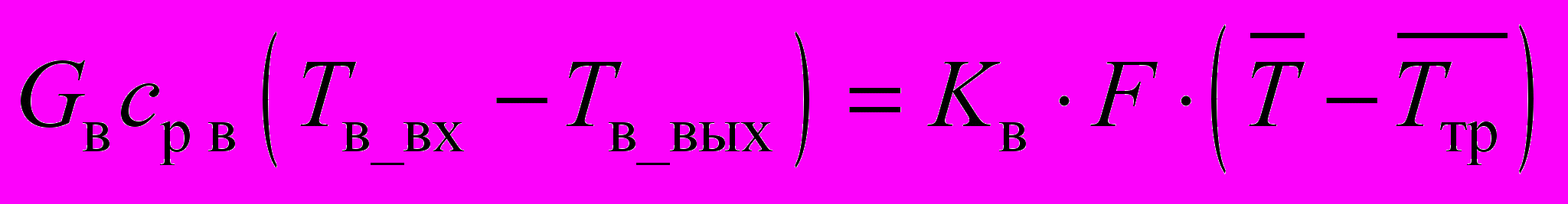 ), и коэффициент теплопередачи определяется воздушной стороной. Применение в этом случае дифференциального метода расчета не целесообразно, так как он не повысит достоверность результатов.Интегральный метод строится на основе модели идеального смешения. Балансовые уравнения составляют для всего объема вещества. Система уравнений, описывающая данную гидродинамическую модель в стационарном режиме и составляемая для обеих рабочих сред, приведена ниже.
