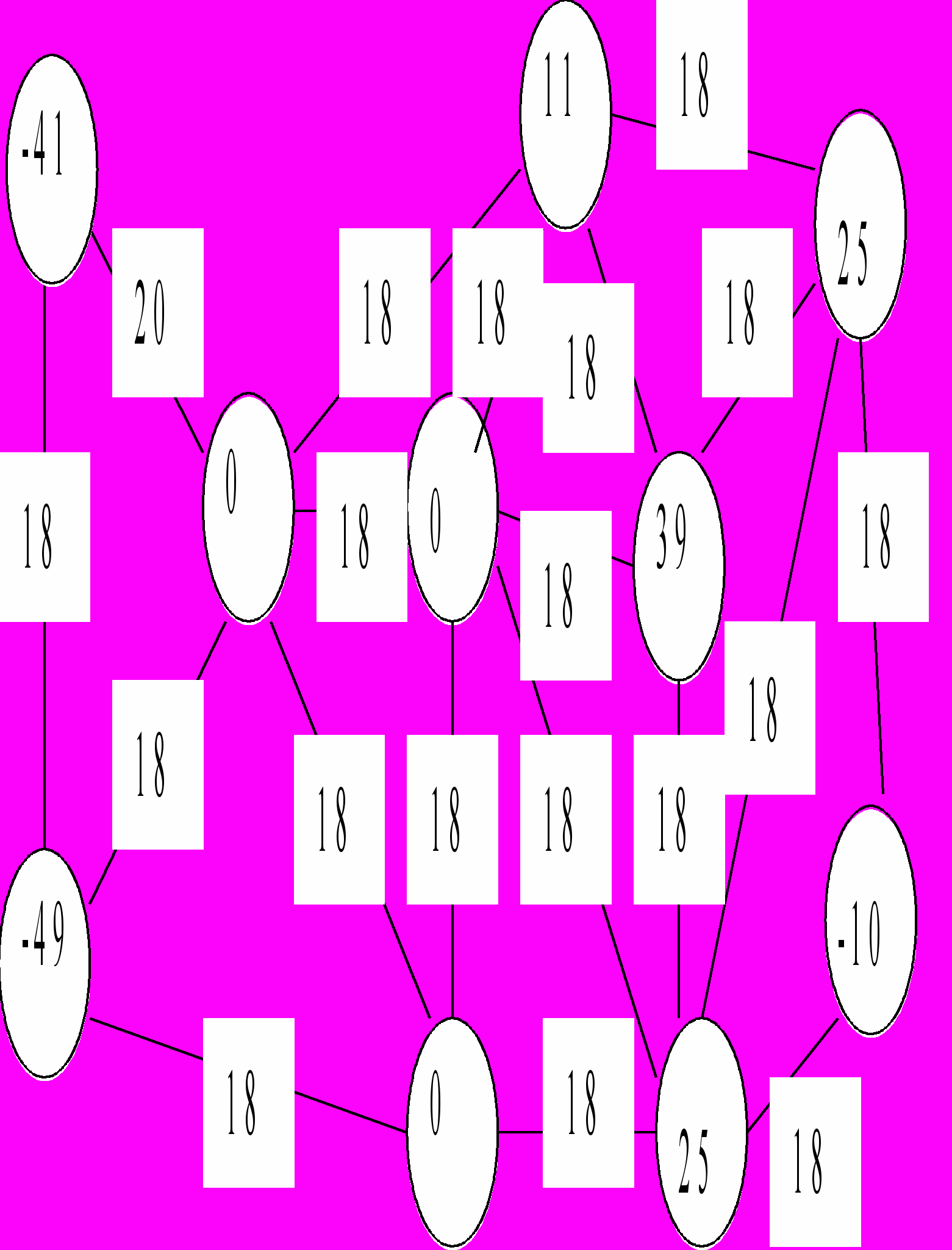 Розширити траспортну мережу допоміжним джерелом і допоміжним стоком та відповідними комунікаціями. Звести задачу про знаходження допустимого транспортного потоку до задачі про знаходження максимального потоку. Зробити 3 кроки методу Форда-Фалкерсона (виписати 3 ланцюжки, по яких здійснювалось збільшення потоку). Виписати максимальний потік на розширеній мережі та вказати, як по ньому визначити шуканий допустимий транспортний потік. На мережі залишити позначки, які доводять максимальність потоку (неможливість його збільшення).