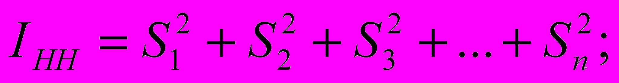 - удельные веса фирм, входящих в отрасль.Если в отрасли функционирует лишь одна фирма (пример чистой монополии), то
