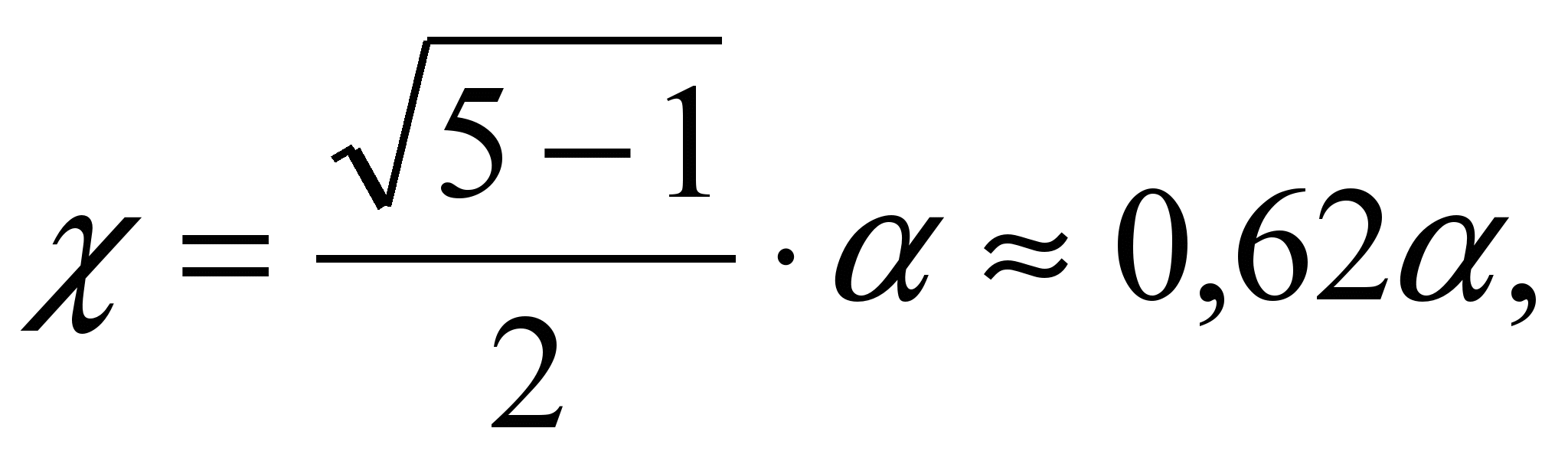 Из этой пропорции следует, что при золотом сечении длина большего отрезка есть среднее геометрическое, или, как часто говорят, среднее пропорциональное длин всего отрезка и его меньшей части: