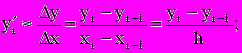 Для вычисления производной y¢i в точке точки xi по формуле (2.2) можно использовать левую разность: