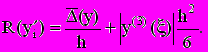 (2.5)- Погрешность численного дифференцирования. При численном дифференцировании с использованием приближенной формулы (2.2), например, по формулам (2.3-2.5), естественно возникает погрешность: R(x,h)=y¢(x)-y¢h(x,h), где y¢(x) - точное значение производной, y¢h(x,h)- значение производной вычисленное по приближенной формуле при шаге h.