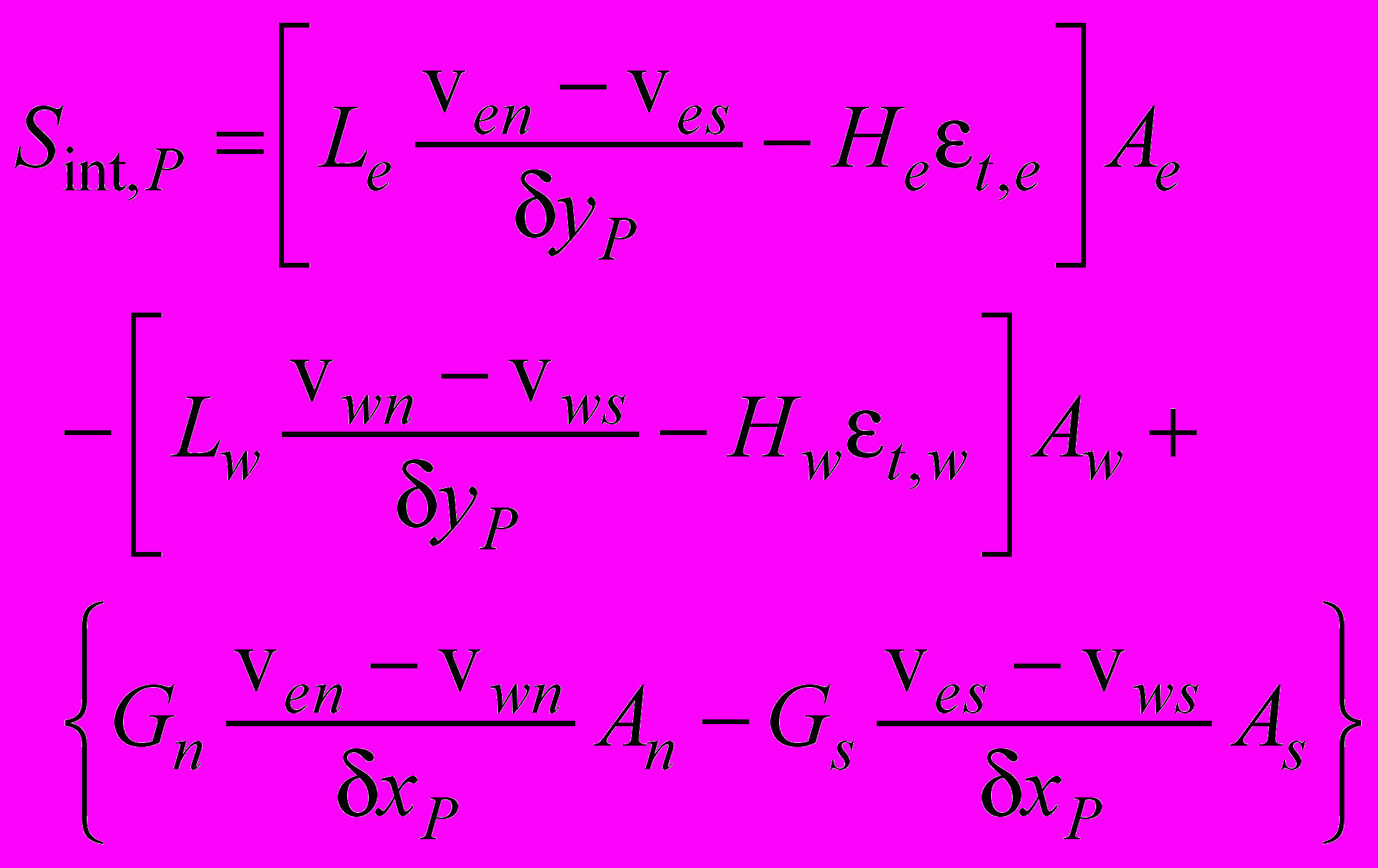 В связи с этим, уравнения конечных объемов, которые соответствуют дифференциальным уравнениям, можно получить интегрированием, аналогичным обычно используемому в случае общего уравнения сохранения.