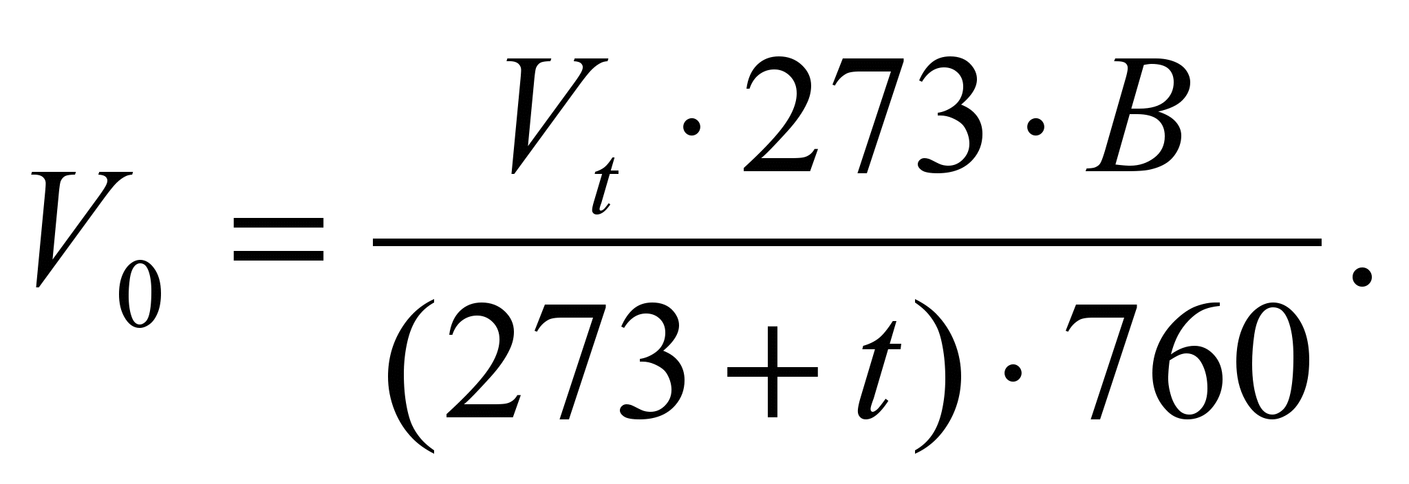 Объем воздуха, который был аспирирован при отборе проб (Vt), приводят к стандартным (нормальным) условиям: температуре 20°С (0°С) и барометрическому давлению 760 мм. рт. ст. по формулам