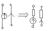 -выход из плоскости времени. Происходит преобразование элементного уровня в усл.-граф. изображение. Алгоритм: 1)Построить операторную схему замещения исх. ЭЦ (каждый эл-т формируется за счёт интегрального преобразования Лапласа). 2)Формулировка и р-е задачи на операторной плоскости. 3)Возврат с плоскости опер. изображений на плоскость временных зависимостей. Операторные преобразования осн.эл-тов ЭЦ: 1) E0