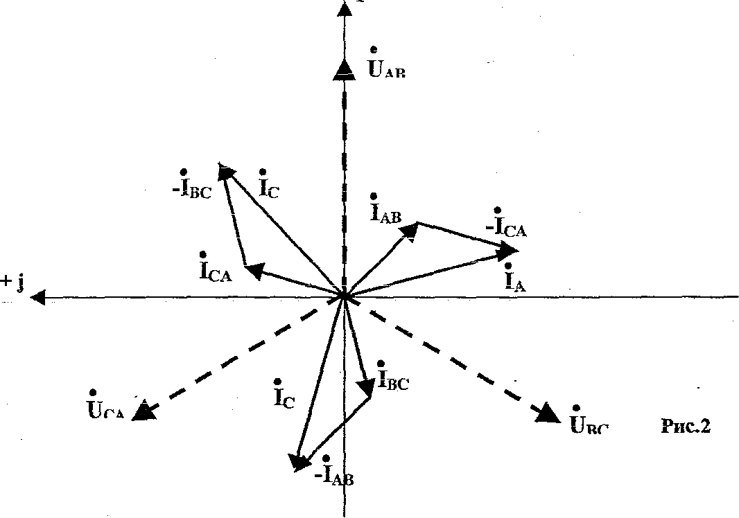 Работа трехфазной системы при соединении нагрузки треугольником.