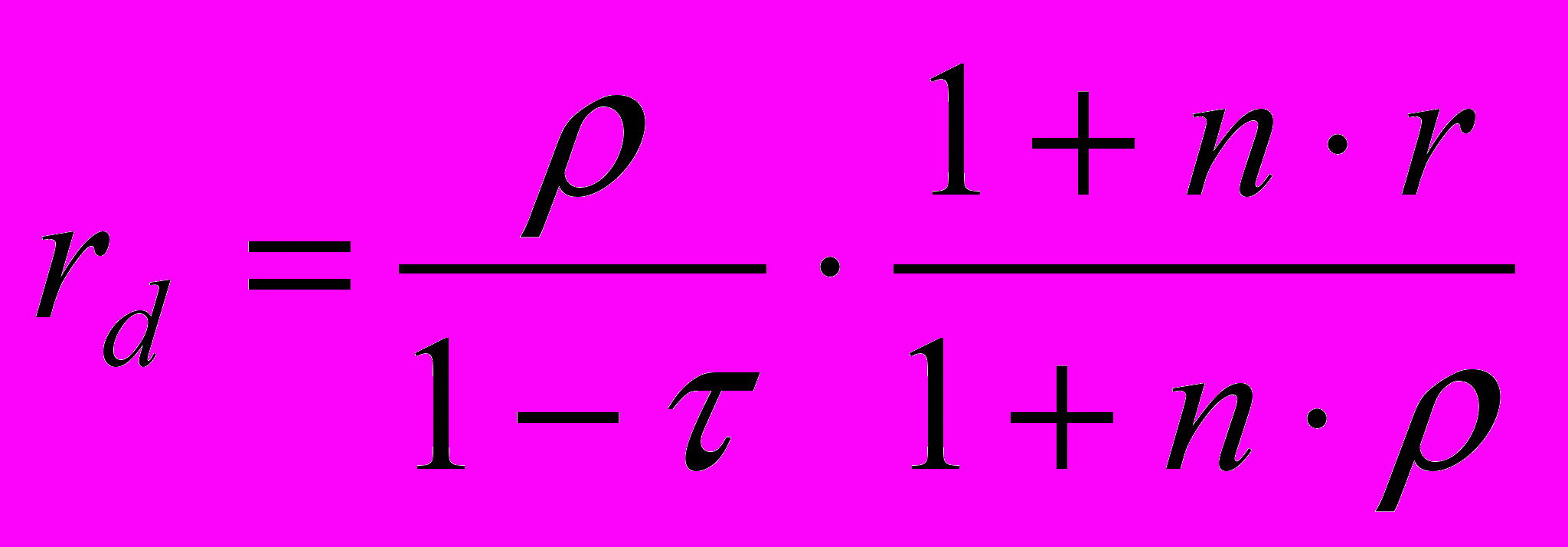 *Обозначения: τ- ставка налога на прибыль; r - безрисковая ставка процента; ρ –требуемая доходность активов; rd – доходность облигаций; n – период рефинансирования долга.