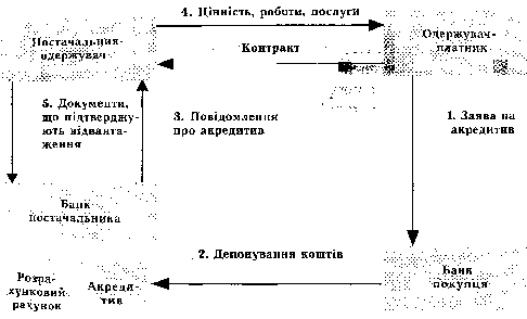 Послідовність операцій при акредитивній формі розрахунків ілюструє така схема: