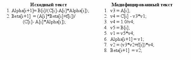 , это делается для параллельной работы двух команд: считывания из памяти и нахождения результата арифметических действий по делению единицы на знаменатель. Для иллюстрации приведённых модификаций приведём исходный код и модифицированный с нумерацией строк: