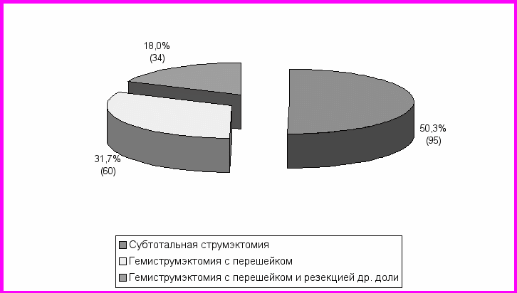 - субтотальная струмэктомия - 95 операций (50,3%);