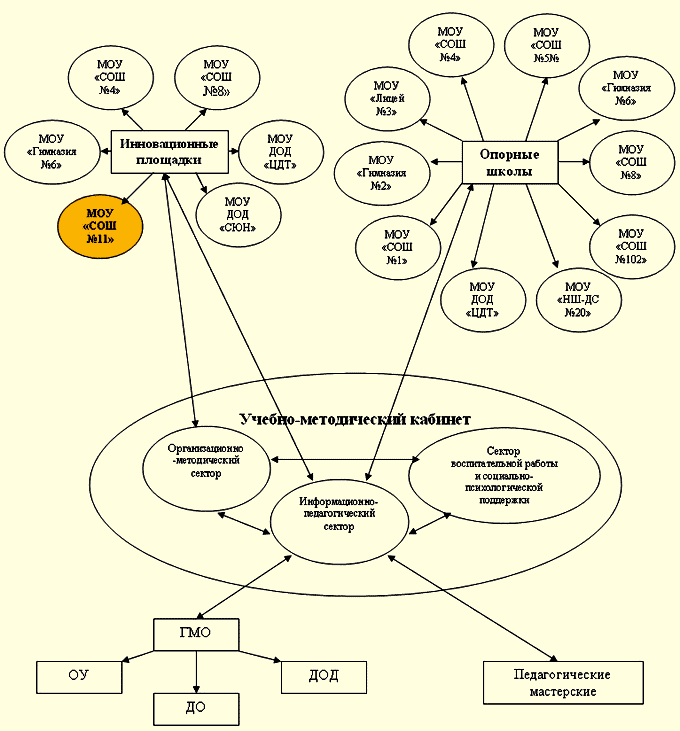 В целях актуализации методической работы в ОУ города, содействия сохранению и развитию методической деятельности в образовательном пространстве города, показа возможностей эффективного использования методического кабинета для развития, МОУ «СОШ №11» участвовала в смотре методических систем ОУ. В ходе смотра были представлены материалы по выявлению , изучению и обобщению ППО, материалы ШМО, педагогических советов, методических советов и др.
