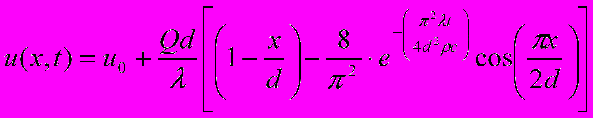 Для цього було побудовано математичну модель процесу вимірювань, яка відповідає процесу поширення тепла в однорідному стержні. Перш за все необхідно було за відомими значеннями теплофізичних параметрів сталей розрахувати розподіл температури по поверхні об’єкта контролю, для чого було розв’язано одномірну задачу теплопровідності: