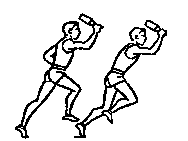 | 2. Бег на сильно согнутых ногах («сидя»), метатель с трудом набирает скорость в разбеге и обгоняет снаряд ![]() | Многократно пробегая по разбегу, держаться высоко на передней части стопы и сильно отталкиваться от грунта ![]() |