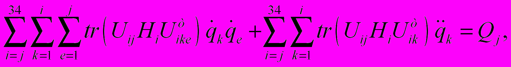 6. Отримано рівняння динаміки ВЕУ у формі рівнянь Лагранжа 2-го роду з використанням апарату однорідних координат. Використання апарату однорідних координат дозволяє формалізувати процедуру виводу рівнянь динаміки, записати їх у компактній матричній формі, зручної для аналітичного дослідження й програмної реалізації при розрахунках на ЕОМ. Показано, що динаміка ВЕУ з вертикально-осьовою схемою описується системою диференціальних рівнянь 68-го порядку.