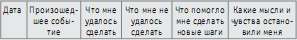 1. В течение 7 дней студенты выделяют наиболее важные события и определяют свое отношение к ним. Необходимо отследить и описать свои переживания, мысли и чувства в тот момент, когда событие произошло и спустя некоторый промежуток времени. Материал, полученный при самонаблюдении заносится в таблицу для дальнейшего анализа. (См. Приложение).