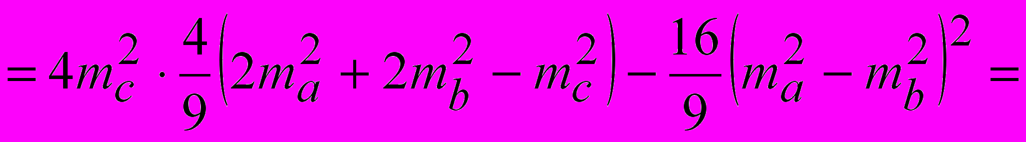 Приведем один из вариантов получения формулы, позволяющей вычислить площадь треугольника, зная значения трех его медиан: