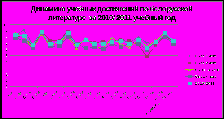 Динамика учебных достижений по белорусской литературе за 2010/2011 учебный год