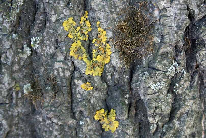 ксантория, мох и гипогимния на придорожном дереве (возле Пекинки)