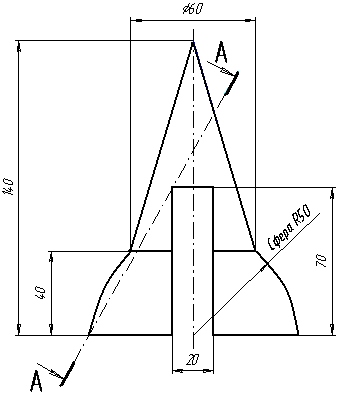 - Формирование трехмерных объектов по проекционному черчению. В задании представленном на рис. 1 на основании заданного чертежа детали, состоящей из стандартных поверхностей (конуса, сферы, блока) выполняется «листовая модель» изделия. Это базовое задание позволяет изучить основные команды по формированию трехмерных объектов, булевы операции и основные способы параметризации стандартных трехмерных моделей. Следующим этапом работы в лабораторном практикуме является работа по индивидуальным заданиям (