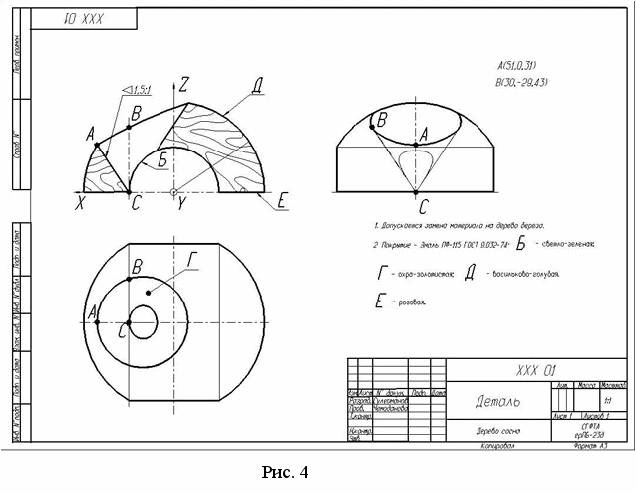 2) соблюдение стандартов по линиям, шрифтам, видам, сечениям (ГОСТ 2.303-68, 2.304-68, 2.305-68) в первой части задания;