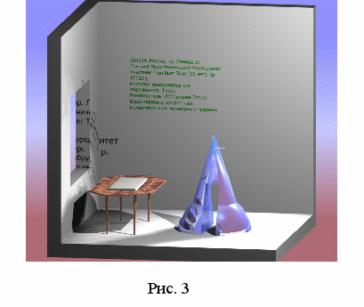 4) качество визуализации сцены – выбор необходимой точности построения элементов сцены, разрешения и методов визуализации, позволяющих создать фотореалистическое изображение. Со всеми пунктами задания справились только 6 участников. Первая часть задания выполнена в 13 работах, вторая часть – в 8 работах. Возможно это связано с тем, что в некоторых вузах в учебном процессе основное внимание уделяется формированию изображений в проекционной связи, в других вузах – трехмерному геометрическому компьютерному моделированию.