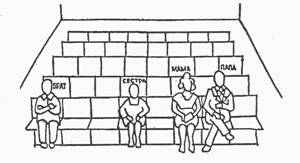 Уважно розглянете, хто на малюнку розташований вище, хто нижче. Найбільш високо розташований персонаж, що володіє, на думку дитини, найбільшою значимістю в родині (навіть якщо він невеликий за розміром). Наприклад, якщо на аркуші вище за всіх зображений телевізор або шестимісячна сестра, те, виходить, у свідомості дитини саме вони «управляють» іншими членами родини.