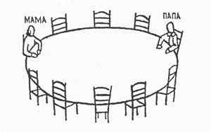 4. А тепер розмісти кілька людей і себе навколо цього стола. Познач їхні родинні відносини - тато, мама, брат, сестра або друг, товариш, однокласник.