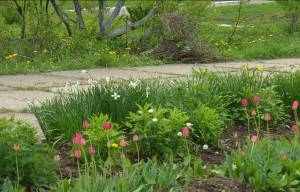 Территорию школы украшают клумбы,