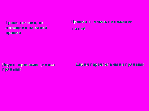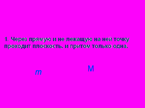 - Аксиома 1. Через любые три точки, не лежащие на одной прямой, проходит плоскость, и причем только одна.